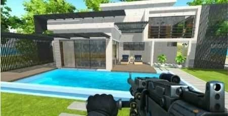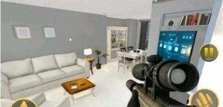 疯狂的射击手抄起武器,对着别墅里的所有东西疯狂扫射,屋内的一切陈设和建筑结构都被打得粉碎,这场景看起来还挺有意思的。