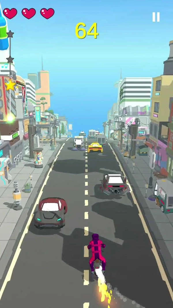 3、按住屏幕进行加速,注意躲避前进路上的各种障碍,小心应对不同类型的难关。