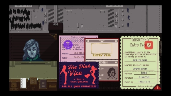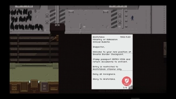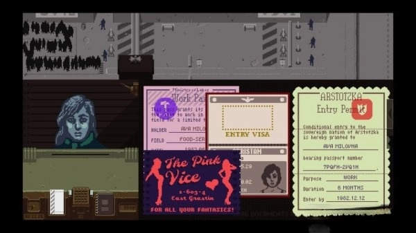 在游戏《请出示文件》里,你扮演虚构国家Arstotzka的边境移民检查官,主要工作是审核过境者的护照和各类证件。你需要通过核对文件信息、比对指纹,有时甚至展开深入调查,来判断哪些人可以入境,哪些人要被拒绝或拘留。随着规则变得越来越复杂,你还会面临一系列道德抉择,陷入重重困境和人性冲突之中,而你的每一个决定都将左右自己的命运。