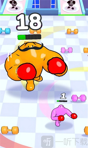 1.运用简单易操作的格斗模式,收集到足够数量的哑铃就能战胜对手。
