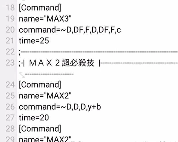 3、往下找看到类似这样的内容,name后面就是招式名,command后面就是出招表
