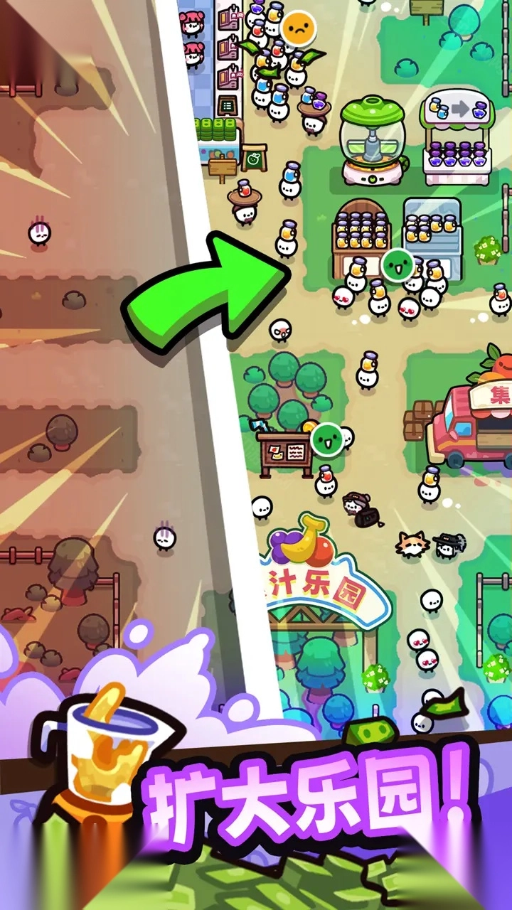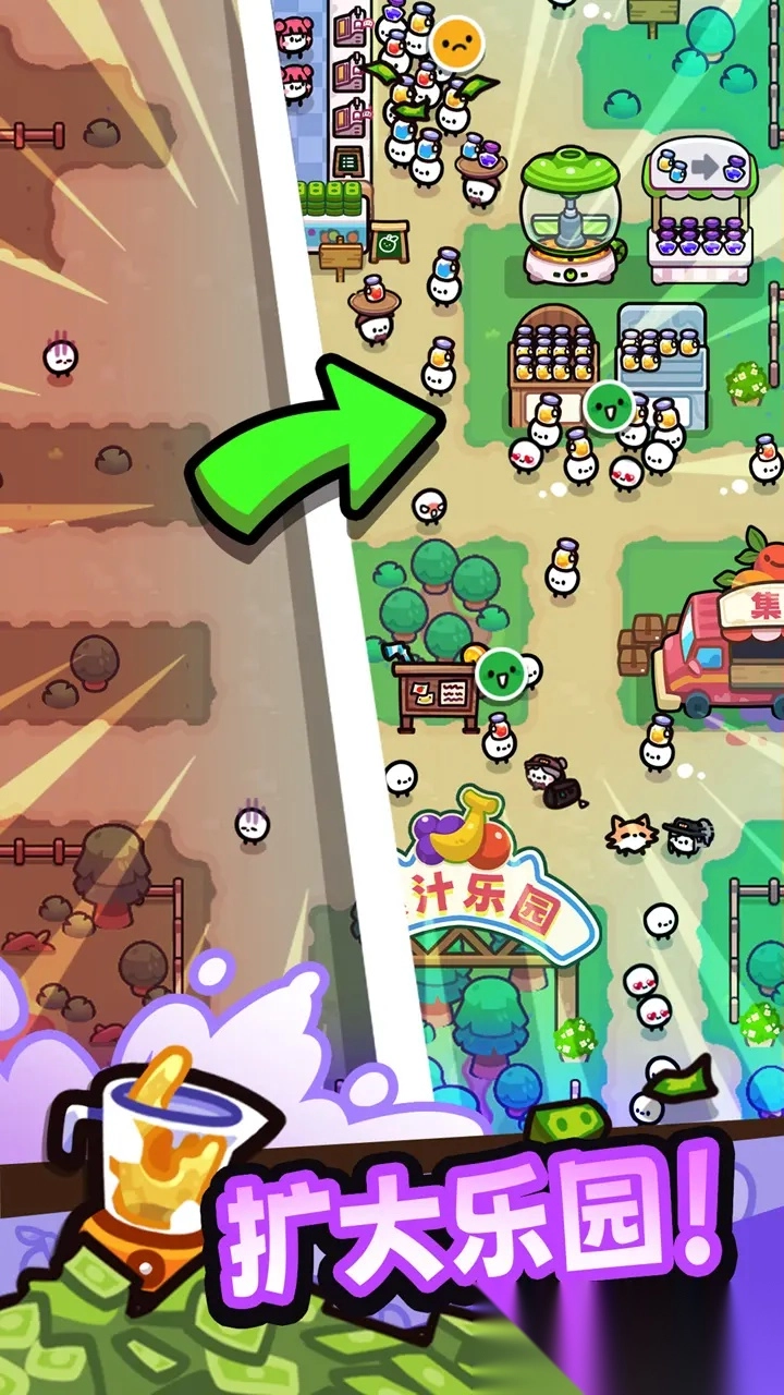 1、放置玩法让人更容易沉浸其中,即便处于下线状态,角色也能自动收集资源并获取收益。 2、游戏里除了切割香蕉、草莓等水果外,你还得招募员工、管理库存,进一步拓展业务规模。
