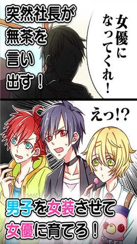 1、三名男子在社长的不合理要求下,被迫踏上了成为当红女演员的道路(这个设定让人感觉似曾相识,和去年暑期番剧《后街女孩》的设定如出一辙)
