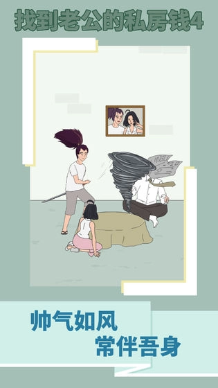 找到老公的私房钱4是一款超有趣的益智解谜游戏,精彩的剧情设定带你走进充满欢乐的搞笑世界,你得仔细搜寻房间的每个角落,找出老公藏起来的私房钱。清新的画风搭配多种独特玩法,能帮你轻松缓解生活压力!快来体验吧!