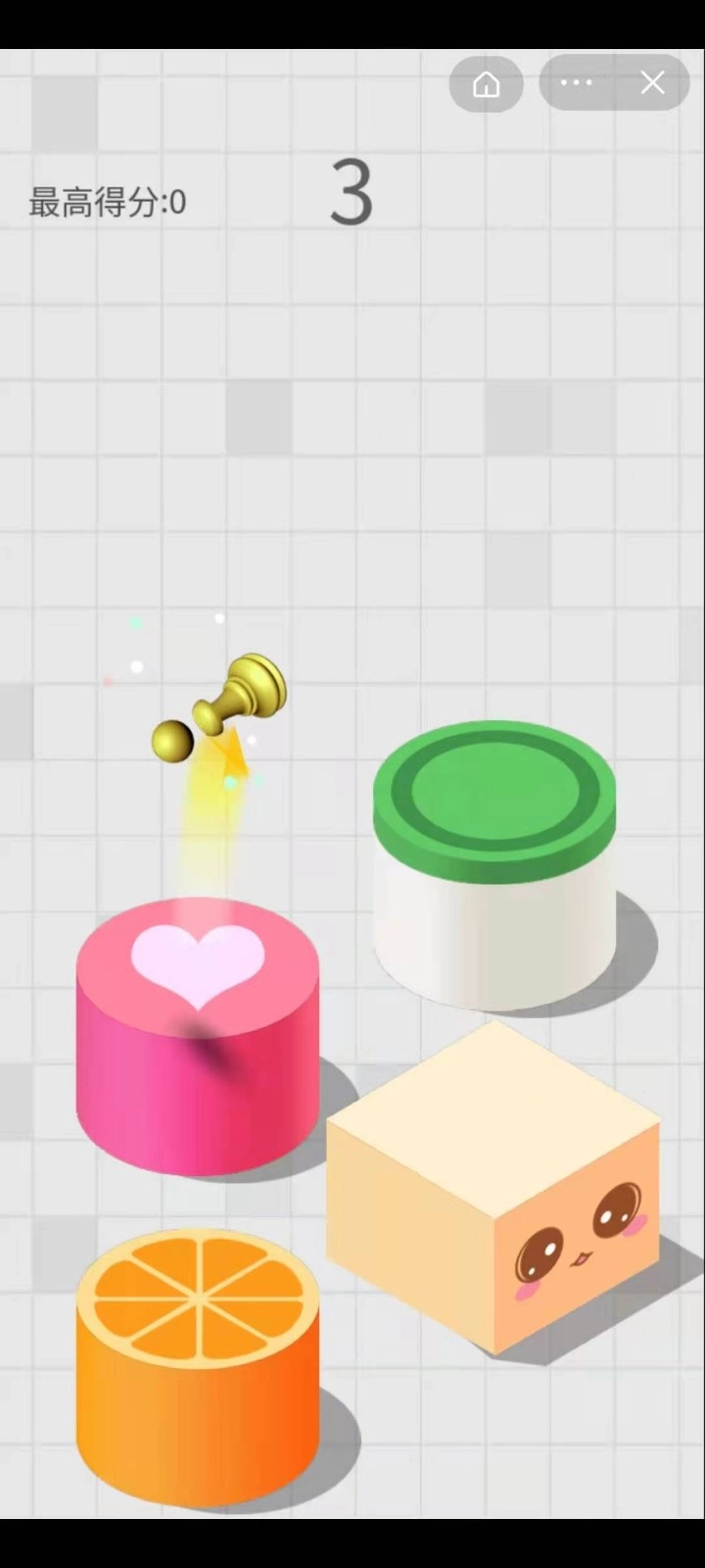 3. 不同位置对应的加分存在差异,中间区域的加分是最高的,玩家需要尽可能选择在中间位置让物体落下。