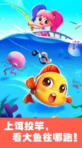 想要钓到大鱼,钓竿和饵料是必不可少的!选好这些装备后,就可以开始挂饵抛竿了。小朋友要耐心观察,抓住时机:看,有小鱼游过来了,这时轻轻左右移动鱼竿,肯定能吸引鱼儿上钩哦!(这能锻炼你的耐力呢)