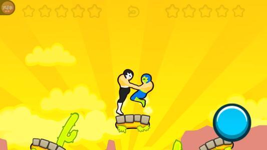 1、《基友摔跤》是一款很有趣的小游戏,两个角色互相扭打,玩家通过持续按键来控制蹬腿动作,只要让对方的头部撞到地面或墙壁就能赢得胜利,既可以选择和AI对战,也能和好友在同一设备上进行对战。