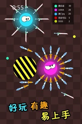 》是一款充满趣味的对战休闲游戏。游戏里有着各种各样的刀剑武器,玩家们比拼的关键在于胆大心细,看谁的飞刀技艺更胜一筹。通过攻击、防御与灵活走位来展现你的操作技巧,毕竟飞刀无情,可一定要多加小心!
