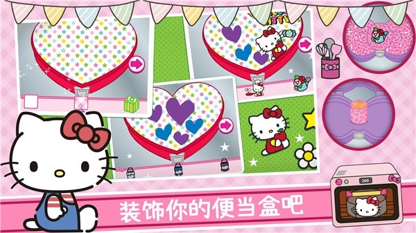 美食烹饪大厨是一款粉色画面的模拟经营游戏,你可以设计便当盒并制作美味的便当,可爱的凯蒂猫角色融入其中,模式轻松有趣,还能探索不同玩法。游戏里的贴纸很丰富,还可以搭配不同食谱,尽情完成美食挑战,带给你诸多惊喜,快来体验吧!