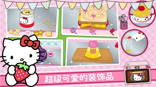 精美的画面与多样的食物制作方法正等待玩家探索。在游戏中,你可以装饰房间、制作美食。这是一种超级休闲有趣的模式,创意HelloKitty的养成玩法简单易上手,让玩家体验不同的食物制作方式。你能自由装饰可爱的便当,让便当盒别具一格,还能根据营养搭配和食谱,自由准备丰盛的午餐,享受快乐的游戏体验。