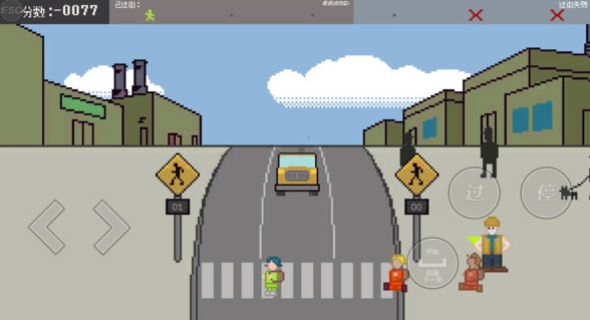 2、训练指挥技能,通过手势示意与点击操作引导小朋友安全过马路。