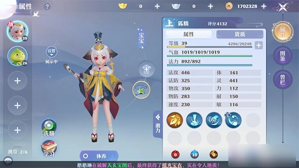 2、点击宠物即可进入属性面板,在这里你能清晰了解宠物的各项培养状况。