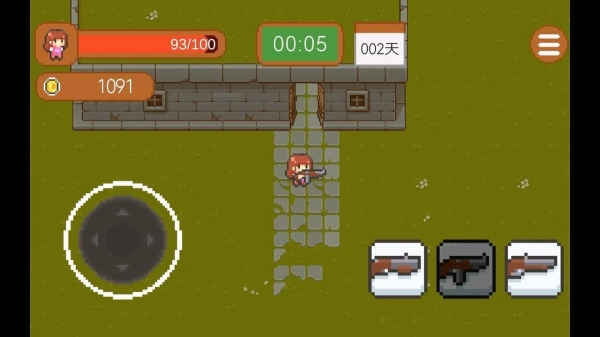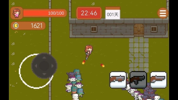 2.游戏开始时会先与一波怪物展开战斗,屏幕左上角显示玩家的血量,右下角则是武器选择区域。玩家无需手动操作,武器会自动进行射击。