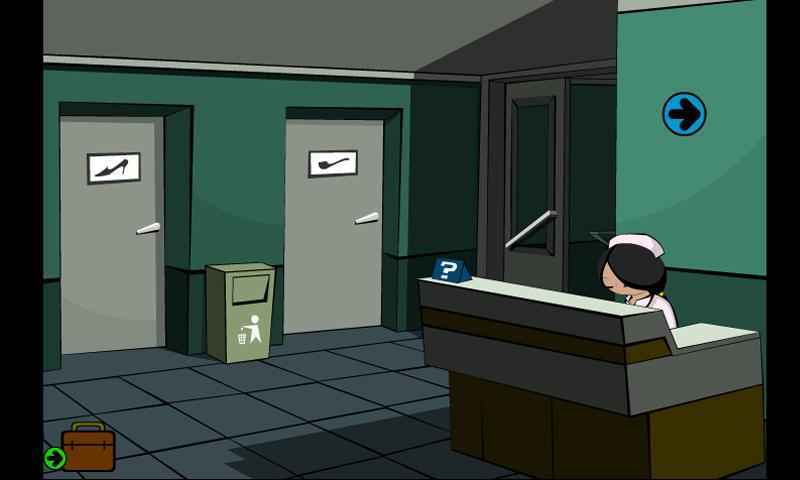2、点击左下角的大玻璃门,观看剧情动画(值班护士会回到前台),接着点击护士,继续观看剧情动画(护士误将侦探当成电气修理工),动画结束后即可获得电箱钥匙。(注意:若在值班护士出现前进入带有高跟鞋标志的女洗手间门,将无法拿到电箱钥匙。)