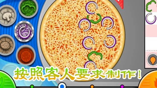 2、这里是配料台,您可以在此处为披萨添加配料,按照右侧的提示进行制作。