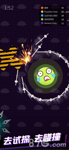 玩家持续拾取新飞刀,借助飞刀拓展自身覆盖范围,以此建立显著优势。随着自身体积逐步增大,不仅具备了自保能力,还能通过击杀其他玩家进一步强化自身。尖刺破坏阵形是应对强敌的终极手段,若陷入敌人包围,可凭借此招实现反败为胜。为争夺榜首之位,玩家需更快速地操控圆圈移动,全力收集飞刀。