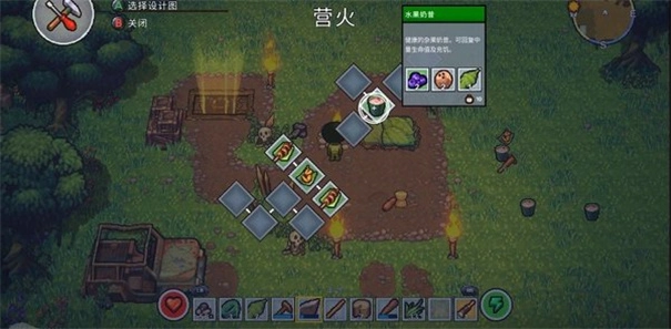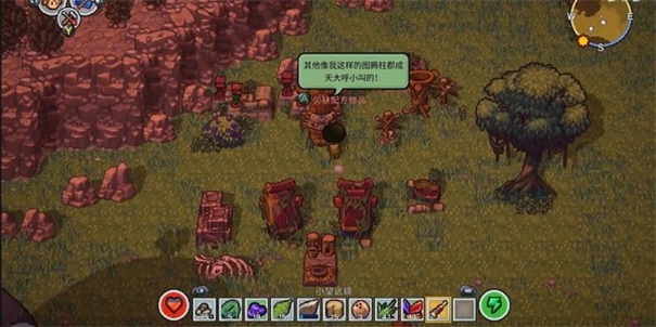 比如,造出石斧之后,它周边的那一圈物品,像草垛、绳子、多用途工具、垫料之类的就都解锁了。