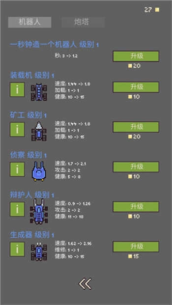 7、当然,利用获取到的矿石,你可以对机器人进行升级,从而更有效地消灭怪物。