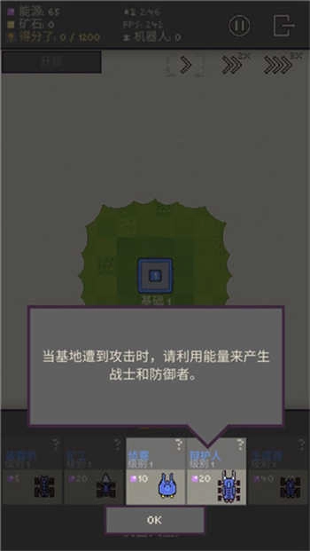 3、当基地受到攻击时,你能够借助能量来生成战士与防御者。