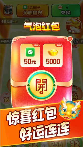 2、每日登录即可获取奖励,通过趣味十足的合成玩法能赢得大量红包,随时领取专属奖励,持续累计红包金额,还有神秘福利惊喜赠送。