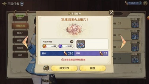 3、想进行王国任务时需消耗一定体力值,体力值在一定时间内自动恢复,也可通过道具王国命令书进行恢复。