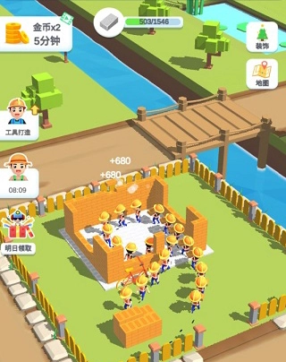 这里有各种各样的房屋类型可供你建造,你可以亲手打造世界知名的地标性建筑。此外,还有极速搬砖、道具空投等更多随机工具可以获取和使用,这些工具能帮助你加速完成建造,效果非常不错。你也可以雇佣更多工人,组建强大的建筑队伍。工人们是分等级的,不同等级的工人在单位时间内的收益效率有所不同,所以你需要合理安排工人的工作,才能让效率达到最大化。同时,这里还有许多任务可以接取,完成任务能获得大量金币,让你购买更多道具。不过有些任务比较困难,而且前期可能没有足够的资源去建造自己想要的建筑,这一点不用担心。