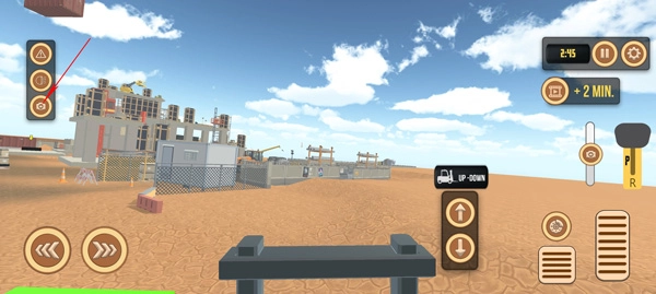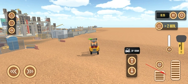 1、点击左下角的两个方向按钮,它们分别用于控制叉车的左右转向。