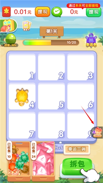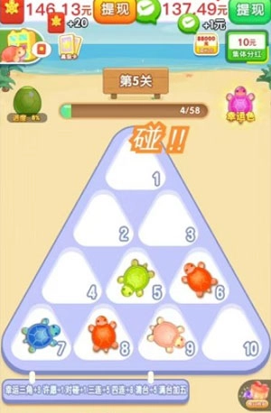 3、在游戏里,除了闯关能拿到红包,收集不同颜色的乌龟来完成图鉴,也能获得奖励呢!