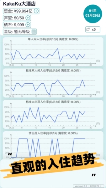 这里面有直观且详细的酒店入住和经营报表,玩家得依据实时的经营报表来调整酒店的经营策略。