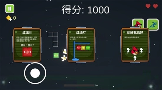 3、游戏中会出现大量方块,需要灵活躲避,同时快速将方块猪发射到空白方块位置,当三个相同颜色的小猪连成一线时即可消除,消除后可获得相应分数。