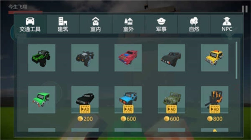 6、背包中装有各类建筑、汽车、人物模型,可任意挑选一辆汽车。