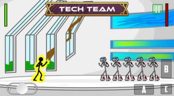 2.设置多个技能按钮,街机格斗风格,显示火柴人保护城市的决心。