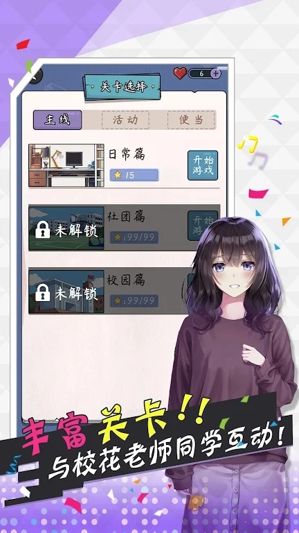 3. 真实的恋爱模拟体验:提供多个可攻略的角色,每个角色都具备独一无二的性格与特质,玩家能够借助加深了解与互动交流,逐步推进专属的感情发展脉络,最终实现恋爱的目标。