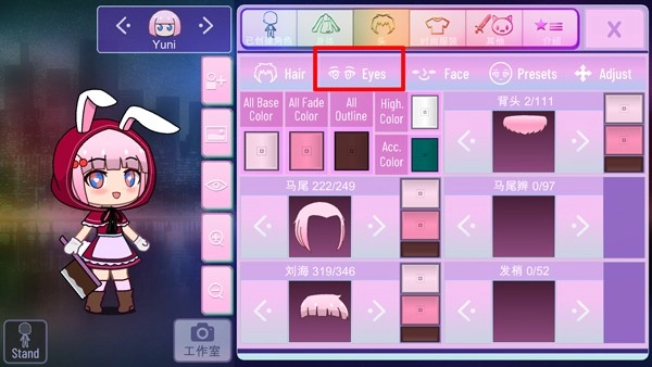 2、接着找到并点击“Eyes”选项,进入眼睛设置界面。