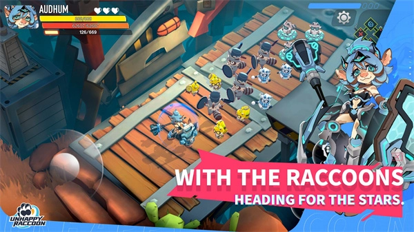 《浣熊不高兴》是一款全新的roguelike动作射击游戏,采用卡通动画风格制作,画面精致细腻,角色造型Q萌可爱,搭配上“biubiu”的射击音效,为玩家构建了一个充满休闲趣味的奇幻世界。在游戏里,玩家将操控角色在未知星球展开冒险,角色拥有酷炫的技能,而且并非孤军奋战——你可以召集浣熊大军,与它们并肩作战,共同击败关卡中的敌人。目前游戏内有奇塔娜、道戈、卡罗塔、开涅斯四大福瑞角色,它们各有独特的攻击方式与特殊技能:比如奇塔娜是手持弩箭的豹人,卡罗塔则是兔子枪手,玩家可根据个人喜好自由选择角色。