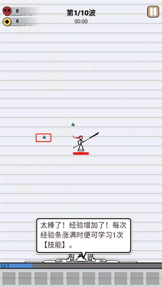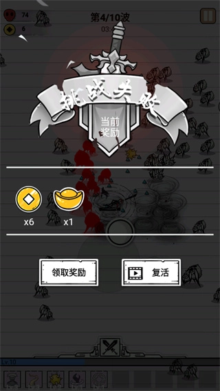 2、控制火柴人战士深入战场,在密集的敌人中穿梭战斗,通过精准的走位和技能释放获得清屏的快感,最终目标是占领每一关的终点区域。