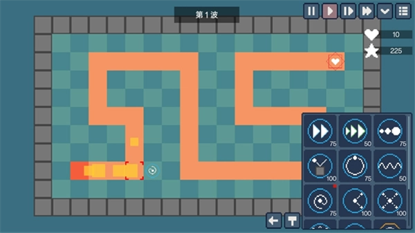 1、会用橙色绘制出一条道路,敌人会沿着这条道路一直走到终点。