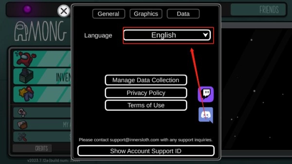 1、打开《太空狼人杀》,进入主界面后点击“settings”选项