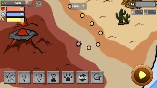 1、在地图界面点击右侧的木质播放按钮,选择LV1 Turtle角色后,玩家即可进入海滩关卡开始冒险。