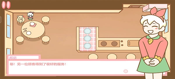 5、完成后回到餐厅,把桌上做好的点心滑到顾客面前,邦尼就会自动去送餐,接着完成后续订单、招待顾客。