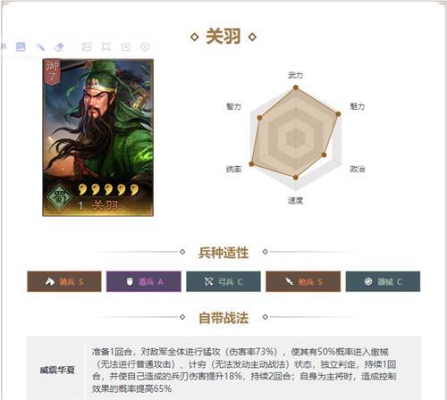 它拥有全游戏最高的武力成长值,统帅属性也十分出色,速度优势明显,堪称物理阵容的最优之选