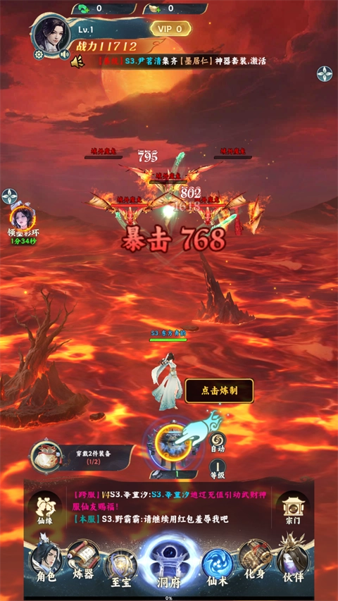 打破单一的成长模式,提供修炼进阶、丹药炼制、妖魔斩杀等多种成长路径。玩家可以自由搭配功法秘籍与神通组合,根据战斗风格定制专属的修仙流派。