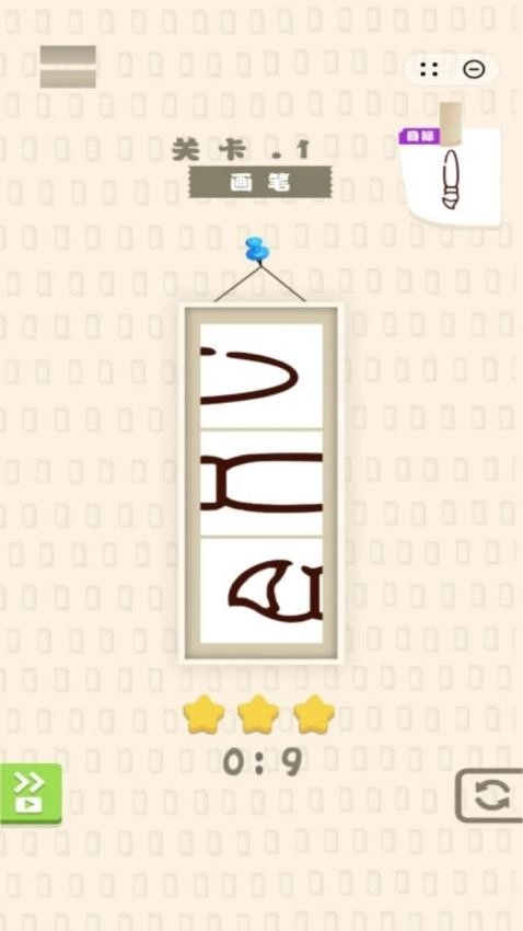 2、进入第一关,能看到三个和画笔相关的图案,按照要求把它们合并成完整的画笔。