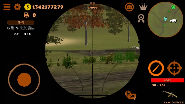 5、当发现目标时,点击右侧的瞄准镜即可开始瞄准,瞄准好目标后就能进行射击。