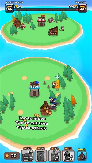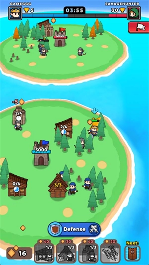 在游戏里,玩家得放置各类建筑来召唤小兵参与战斗,通过砍伐树木收集资源以召唤不同兵种,巧妙搭配兵种去完成各类挑战,击败形形色色的敌人获取不同奖励,运用多样计谋在战斗中取胜,持续获胜从而成为最强的国王。
