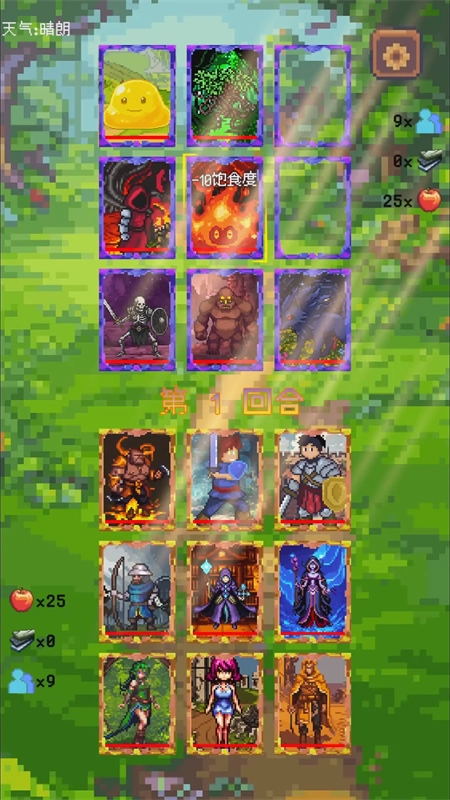 《九宫格战争》是一款能让你沉浸于策略博弈的回合制游戏。玩家将化身指挥官,在九宫格战场上精心排兵布阵,集结承伤的战士、输出的法师、负责后勤的农民、擅长疗愈的医生以及专注锻造的铁匠这五类英雄,通过职业间的协作构建出独属于自己的阵容。每个回合中,单个英雄进行操作会消耗体力,因此需要仔细权衡不同技能的特点以及站位策略,以此来对抗关卡中的怪物。此外,晴天、雨雪等天气变化,疾病、狂犬、鼠疫等健康威胁,还有鼠患、虫灾等灾害事件,这些随机因素都会为战局增添变数,考验玩家的临场运营能力。快来体验排兵布阵所带来的智慧乐趣吧!