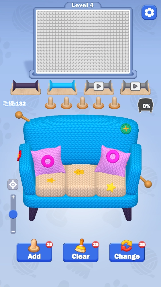 2、当集齐三根相同的毛线时,它们会在图画里自动进行编织,随后便会出现新的目标。