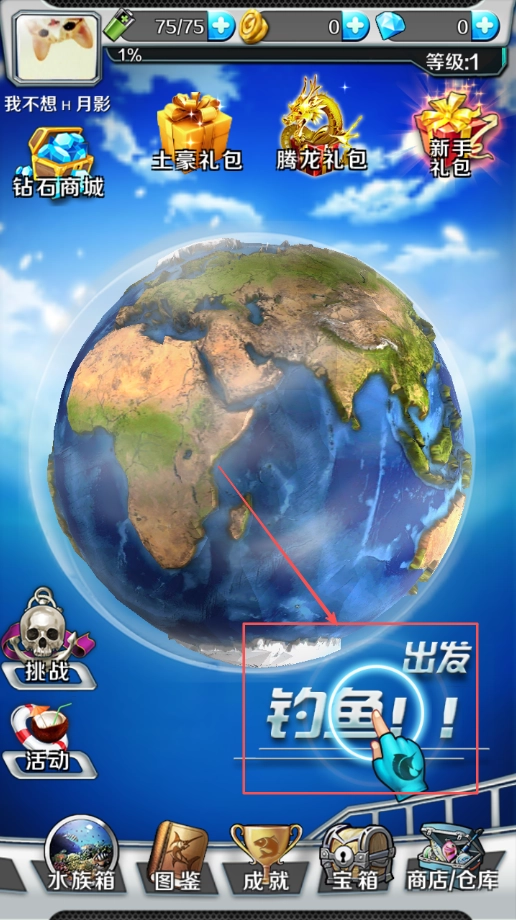 1、进入选择开始钓鱼的准备环节,开启垂钓体验过程,熟悉操作界面及基本功能的布局设计特点。