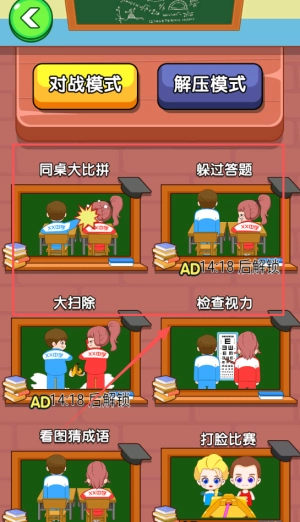 1、设计中加入了躲避老师回头注视的紧张环节,一旦被老师发现就会直接判定失败,以此考验玩家的反应速度和观察能力。