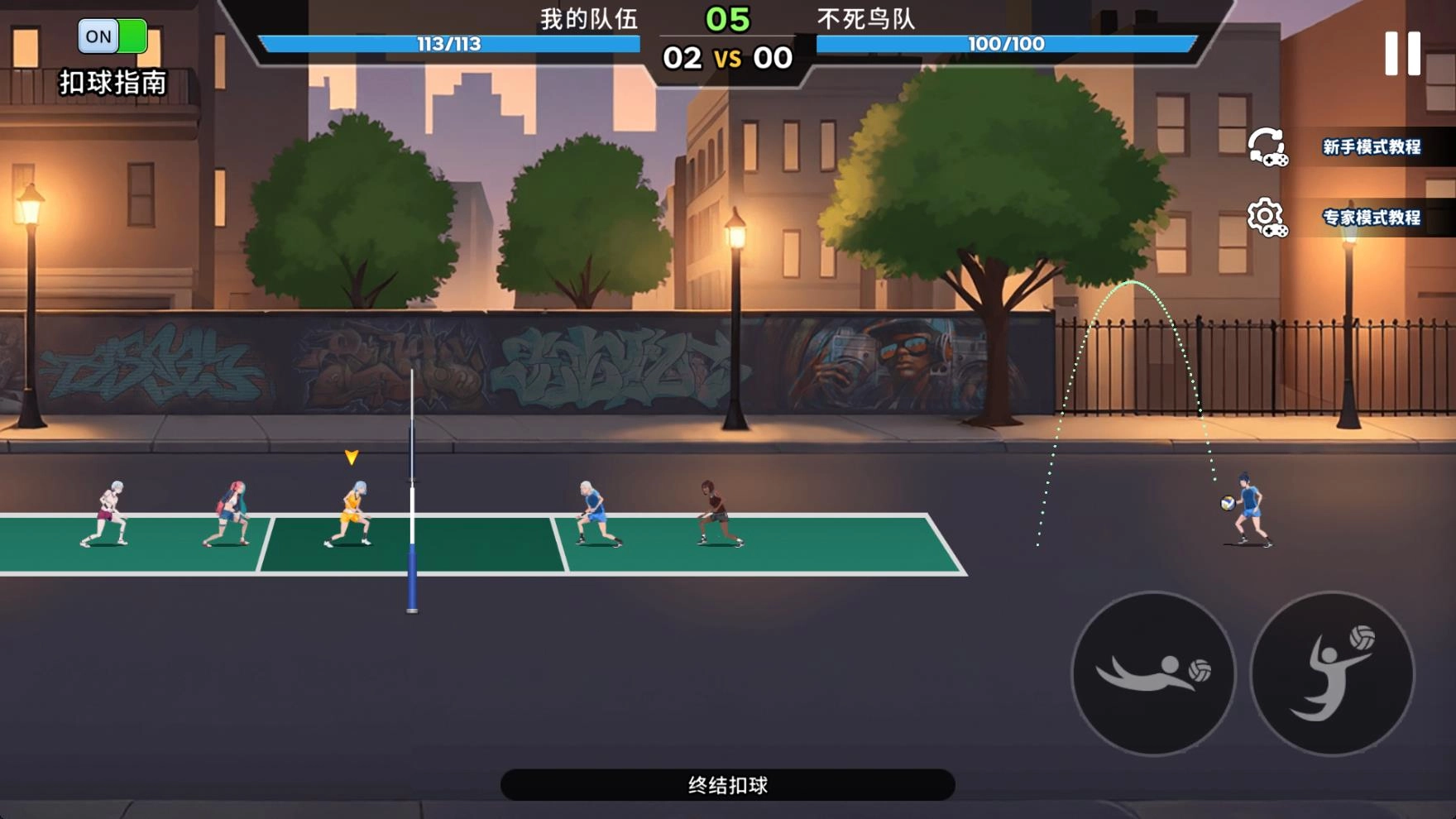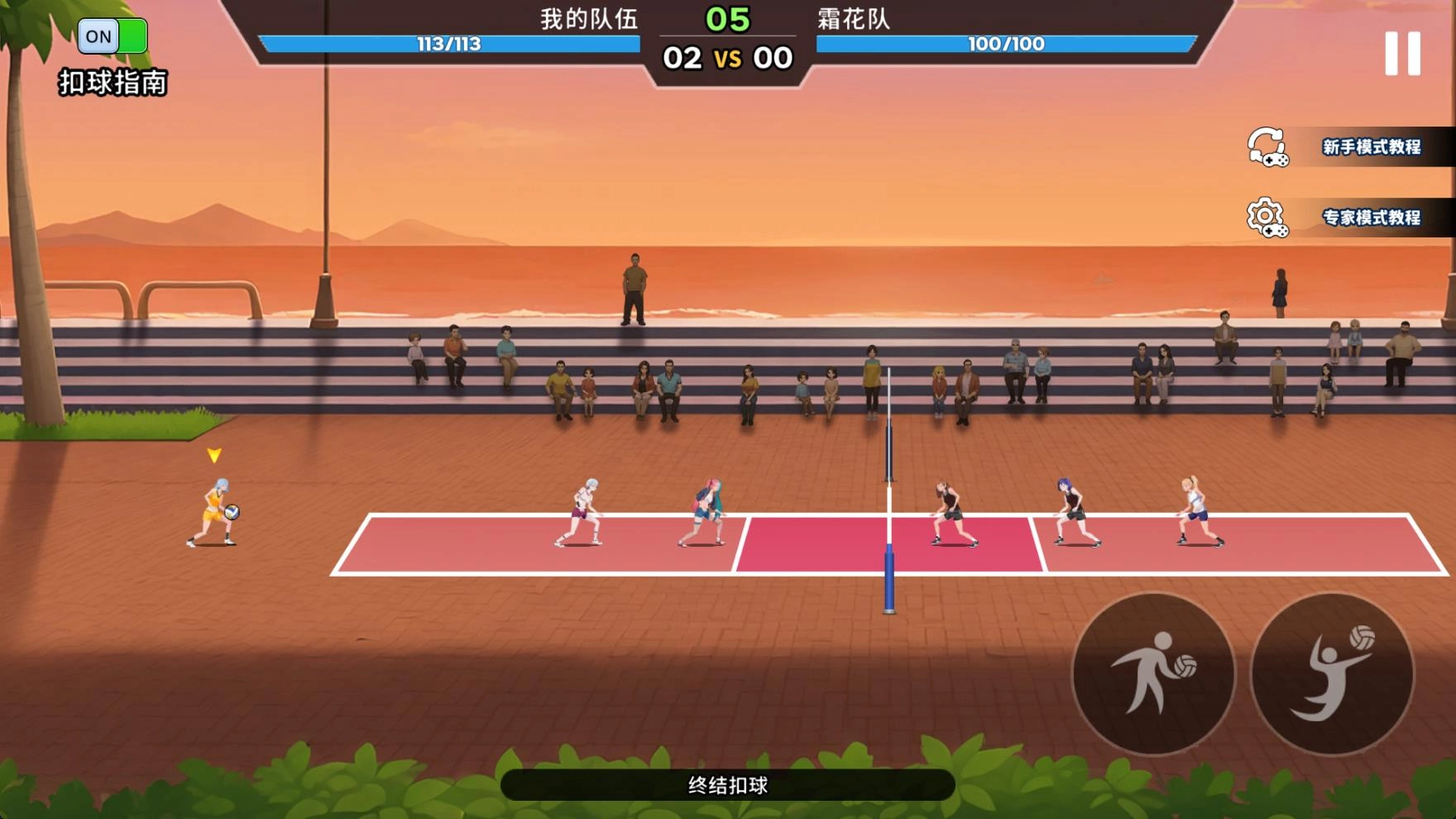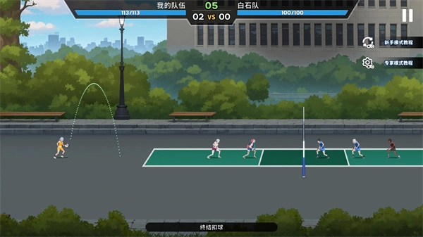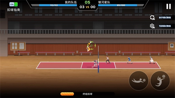 3、进入关卡后角色会自动接球,玩家只需控制角色进行扣球和发球操作即可。